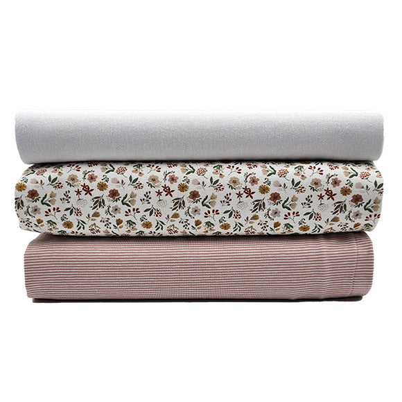 Jersey Stoffpaket Mille Fleur und streifen rosa mit Bündchen